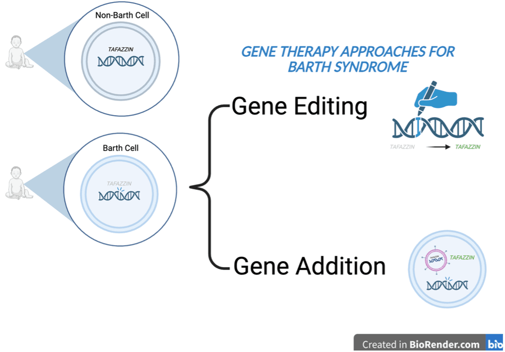 Currently, there isn’t a simple answer to the question posed above. Gene addition and gene editing each have strengths and limitations in the context of Barth syndrome. Gene editing directly treats the underlying variant or mutation in the affected individual’s own cells, thus permanently correcting the issue. Gene addition relies on providing a corrected copy of the gene to each cell, but the underlying mutation continues to exist. In Barth syndrome, over 200 different DNA variants are known to cause the syndrome. While a single gene addition therapy can be given to a population that harbors many different variants like Barth syndrome, a new gene editing therapy must be designed for each person’s specific variant which poses extra expenses and regulatory hurdles for drug developers. One issue that both gene addition and gene editing therapies currently struggle with is reaching a broad variety of cell types in the body without causing issues like toxicity. In KJ’s case, the primary target was the liver, which an easier target. In Barth syndrome, the therapy must hit the heart and skeletal muscle effectively without causing side effects. Gene editing therapies may be associated with less side effects but, in the case of systemic treatment, may also require repeat dosing. Gene addition therapy can be associated with significant immune system side effects and require immunosuppression as part of the treatment regimen but is designed to ideally only be given one time.